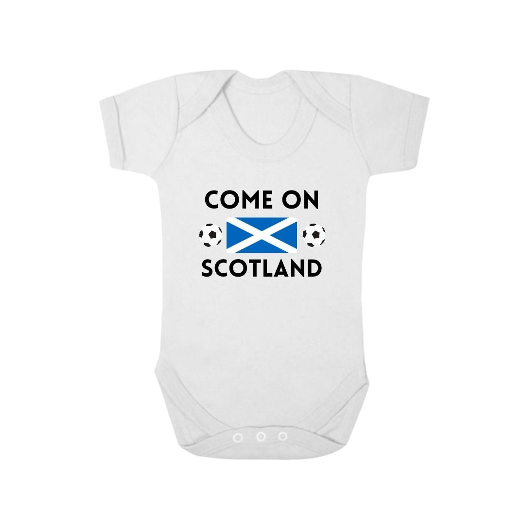 Second Ave Come on Scotland Football Euros World Cup Baby Grow Vest White Shortsleeve Babygrow Bodysuit